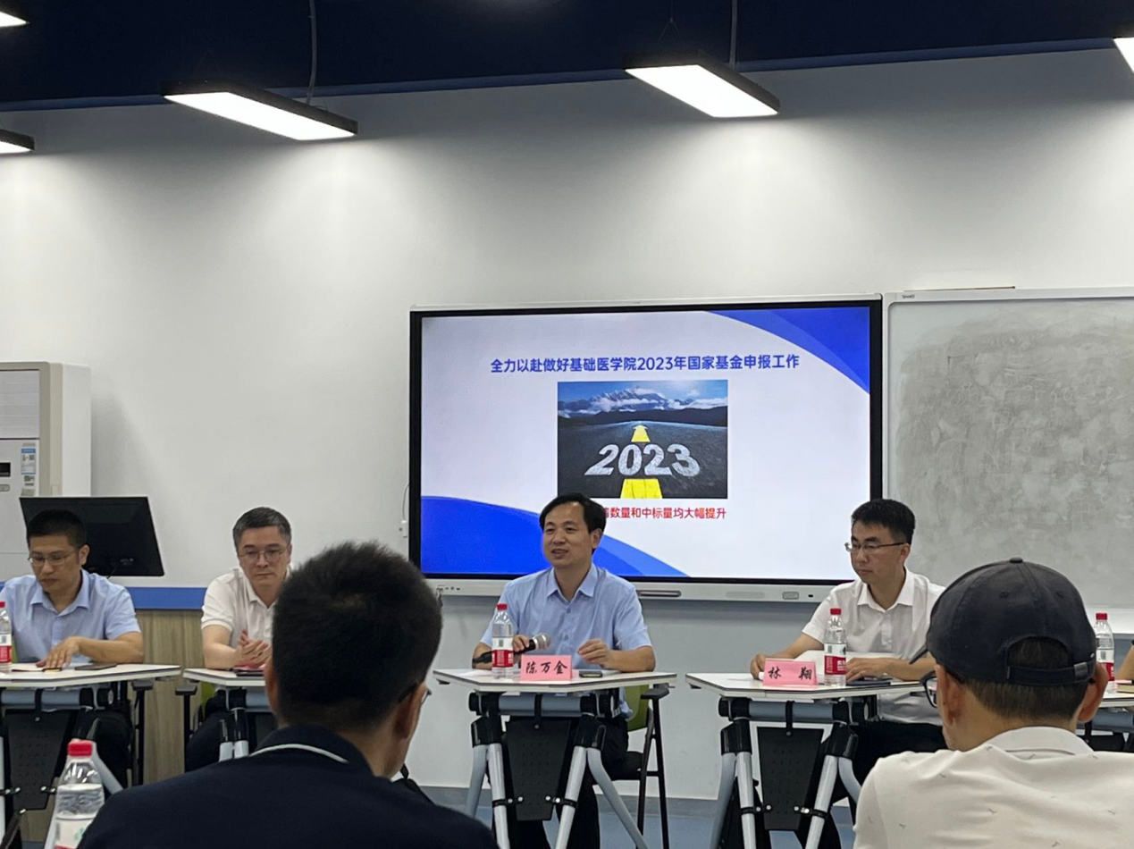 陈万金听取了麻豆视频 学科建设与科学研究等工作情况汇报,对学院所取得的成绩给予了充分肯定,并提出了宝贵意见。他强调,要完善创新团队建设机制,持续打造高水平师资队伍;要加强基础与临床融合,助推高水平科学研究;要发挥各级科研平台优势,促进学科建设和团队发展,争取在科学研究与学科建设上取得更大突破,助力学校“双一流”建设和高质量发展。