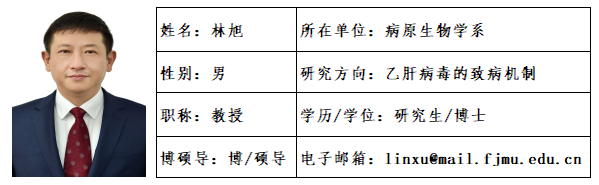 林旭,男,1970年4月生,福建福清人。复旦大学上海医学院博士、美国NIH博士后。教授、博士生导师。消化道恶性肿瘤教育部重点实验室主任。基础医学国家一流专业负责人、基础医学一级学科博士学位点负责人。为国家百千万人才及国家有突出贡献中青年专家、国务院特殊津贴获得者、教育部新世纪优秀人才、全国优秀教师及全国优秀博士论文作者。