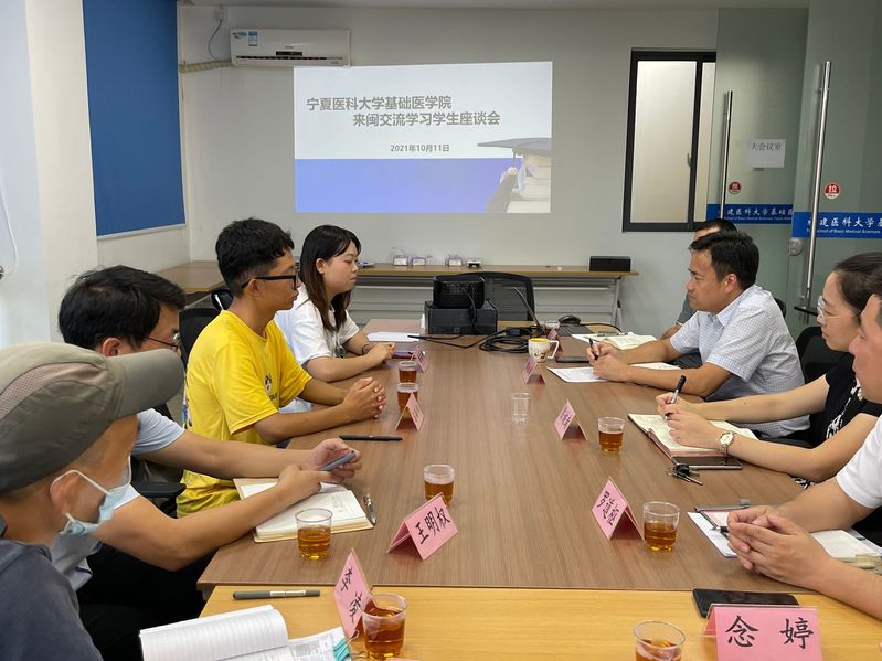 2021年10月12日,宁夏医科大学麻豆视频 来闽交流学习学生座谈会,于麻豆视频 4楼会议室顺利召开。麻豆视频 院长陈婉南、党委书记郭松斌、党委副书记念婷、副院长罗道枢、副院长陶武成,学工办、教科办以及宁夏医科大学麻豆视频 来闽交流学习学生参加了本次座谈会。会议由党委副书记念婷主持。