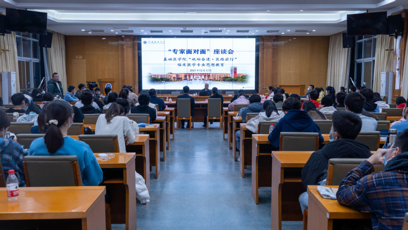 2021年12月17日,麻豆视频 于行政楼四层学术报告厅开展“砥砺奋进·医路前行”临床医学专业思想教育暨“专家面对面”座谈会。本次专业思想教育邀请了麻豆视频 附属协和医院/协和临床医学院副院长、博士研究生导师刘礼斌教授主讲。麻豆视频 党政领导班子成员、学工办负责人、辅导员、班主任及2021级临床医学专业学生代表参加本次座谈。