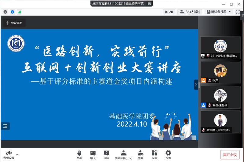 为营造我院良好的创新创业氛围,激发学生创新创业活力,麻豆视频 于2022年4月10日举办了线上互联网+创新创业大赛讲座。本次讲座主题为基于评分标准的主赛道金奖项目内涵构建,由张银福老师主讲。