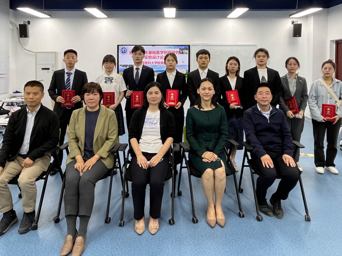 在点评环节,现场评委专家对参赛队伍的现场发挥进行了点评,并强调了科研创新和科研思维的重要性,同时介绍了学生参加科研竞赛的注意事项和经验技巧。最后,教务处领导对今年参赛队伍的表现给予了充分肯定,表示学校非常重视和支持大学生创新创业训练,希望通过积极参加学科竞赛提升基础医学拔尖人才培养质量,同时也希望参赛团队和指导教师继续努力,在“第八届全国大学生基础医学创新研究暨实验设计论坛”分区赛和全国赛中取得优异的成绩。