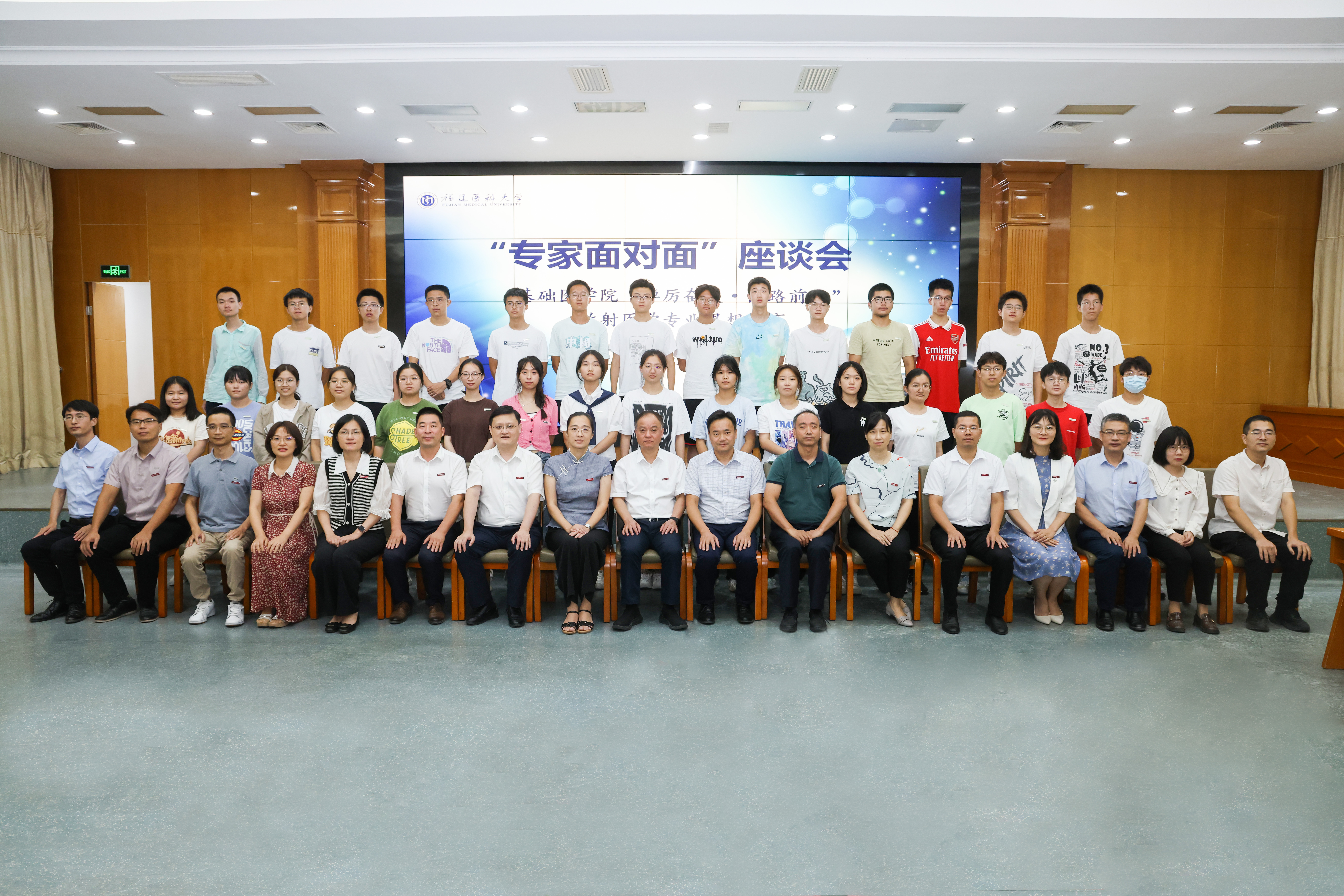 在答疑解惑环节中,同学们积极参与,纷纷提出自己对专业和学习的困惑。陈传本教授和福建省肿瘤医院老师们均耐心细致地进行解答。现场氛围轻松欢快,不仅拉近了师生之间的情谊,更加提高了同学们对放射医学专业的认可度。