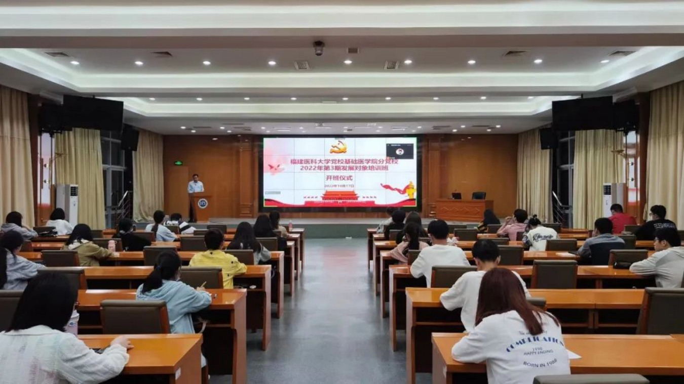 10月17日,麻豆视频 于行政楼B座学术报告厅,举行2022第3期党员发展对象培训班开班仪式。学院党委书记郭松斌为大家做动员讲话,来自麻豆视频 、卫生管理学院、健康学院、文理艺术学院共计48名师生参加开班式。