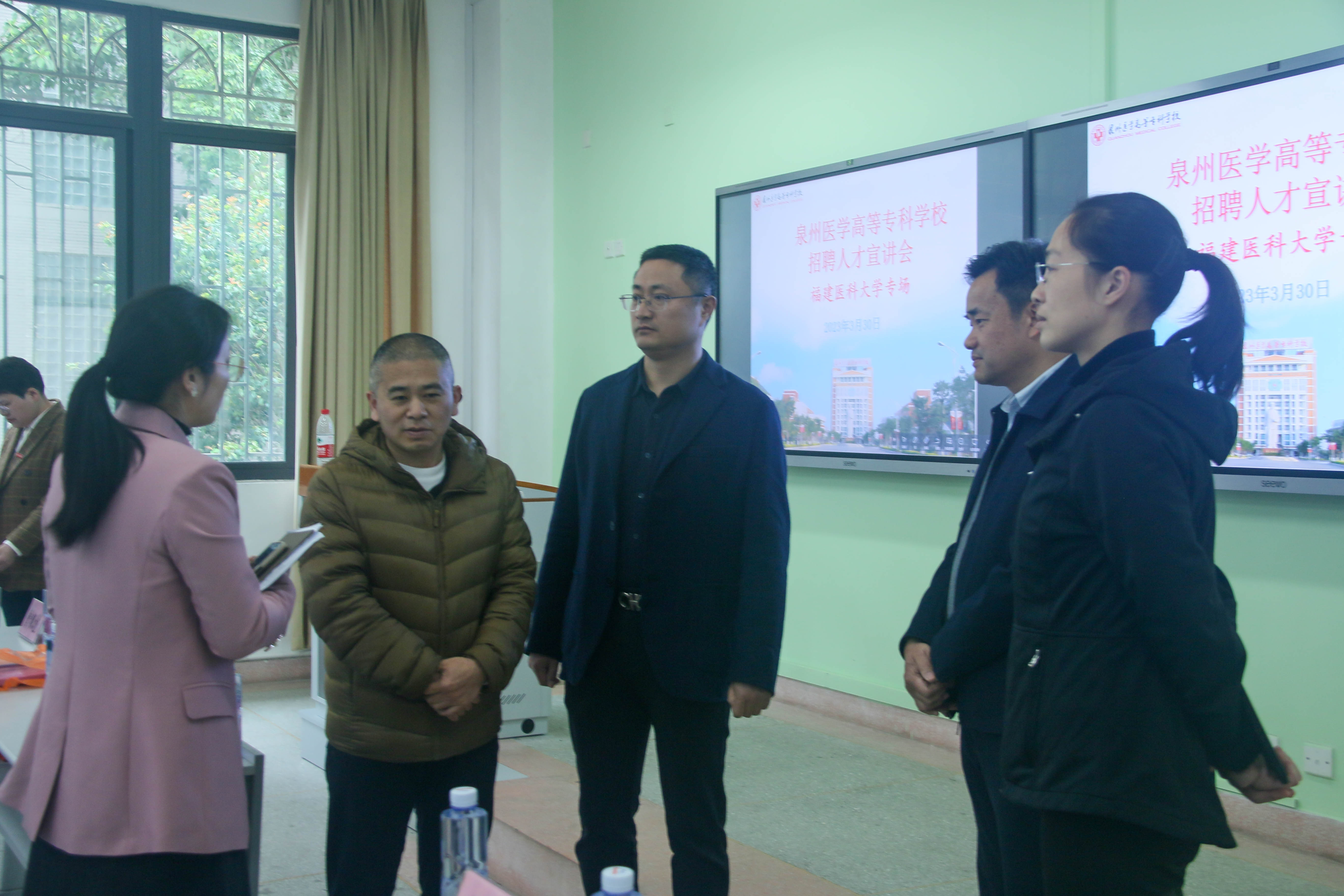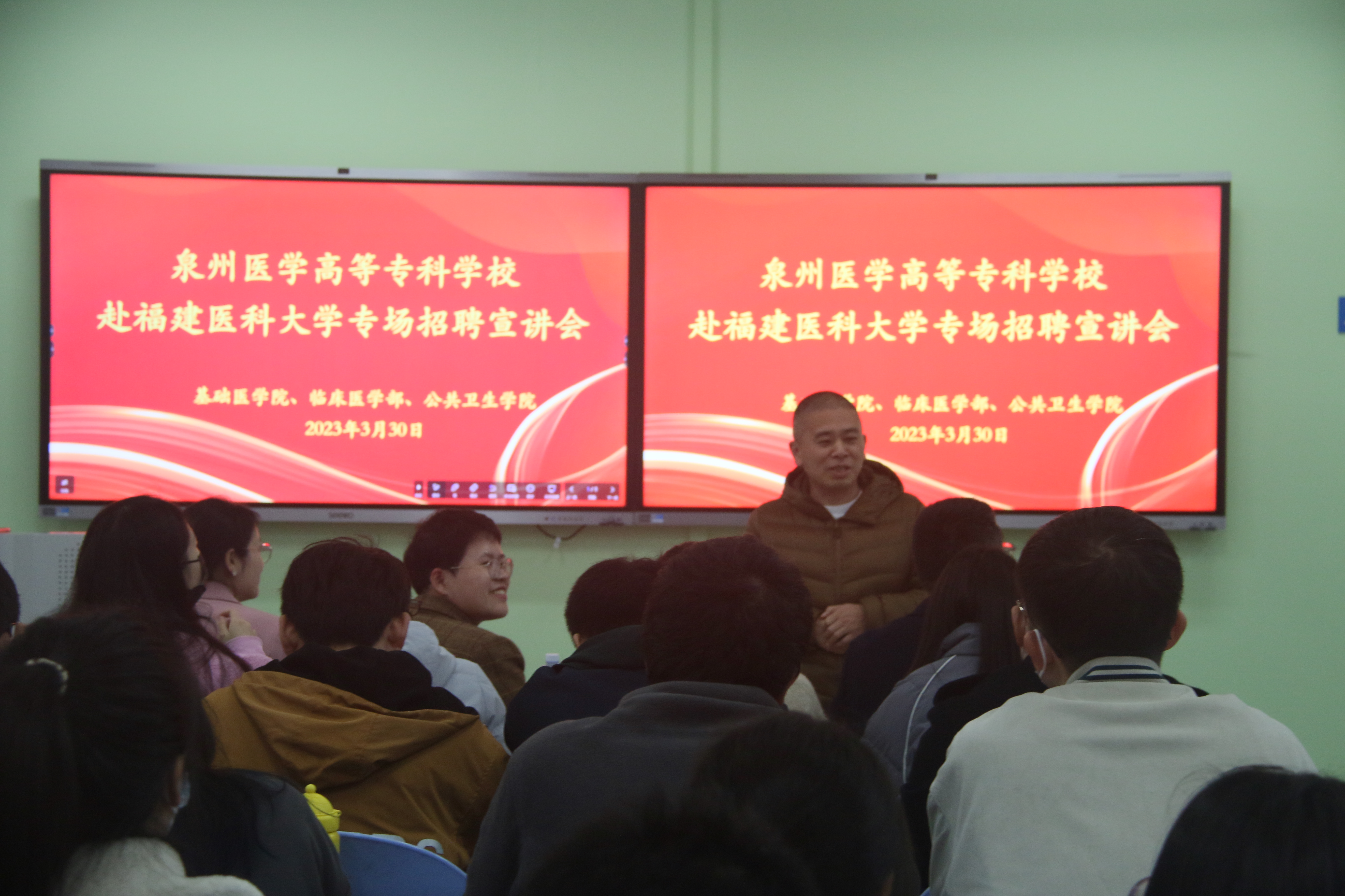 2023年3月30日下午,我院联合临床医学部、公共卫生学院在旗山校区第69教室,邀请泉州医学高等专科学校等单位来校进行校园宣讲和现场招聘。校学生工作处副处长曾银花、麻豆视频 党委书记郭松斌、院长陈婉南参加。
