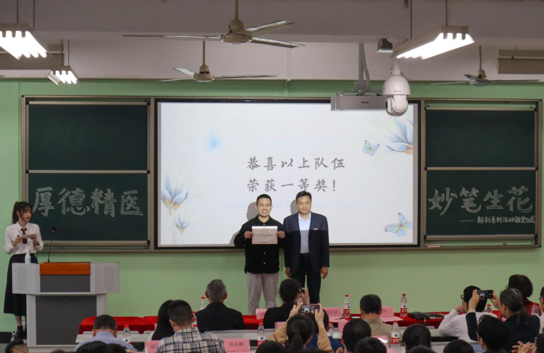 郭松斌书记为荣获解剖技能大赛一等奖的队伍颁奖