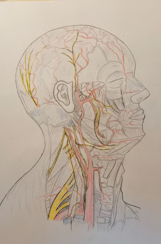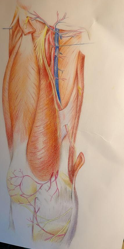 在解剖绘画比赛中,我院学子用笔墨绘画的方式,呈现出了人体内部各种神奇复杂的解剖结构,将细致入微的人体结构通过线条与色彩精确地表现出来。