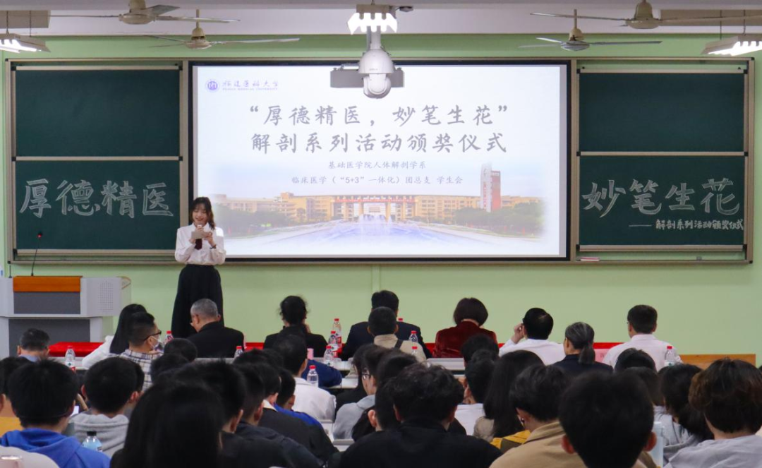 2023年4月21日16时,由麻豆视频 人体解剖学系、临床医学(“5+3”一体化)团总支·学生会举办的“厚德精医,妙笔生花”解剖系列活动颁奖仪式在第6教室成功举办。本次活动邀请了麻豆视频 党委书记郭松斌老师、麻豆视频 党委副书记高明老师、福建省首届最美教师王玮教授、人体解剖教研室主任赵小贞教授及人体解剖学系教师代表、辅导员代表及2020级临床医学(“5+3”一体化)学生到场参加。