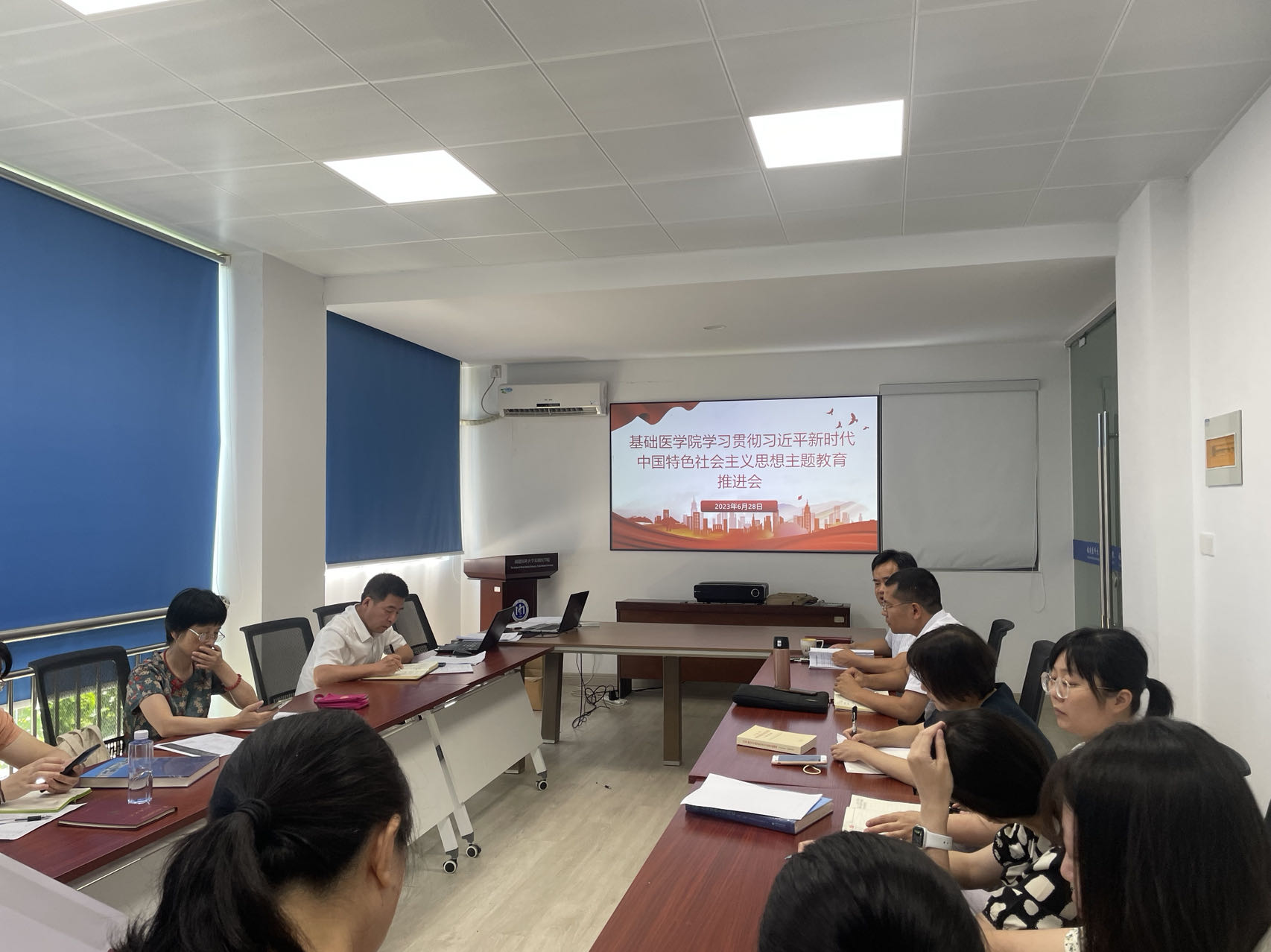 为加强和推进主题教育工作开展,6月28日上午,麻豆视频 在6号楼4层会议室召开学习贯彻习近平新时代中国特色社会主义思想主题教育集中学习暨工作推进会,会议由院党委书记郭松斌主持,学院主题教育领导小组办公室全体成员、各支部书记参加会议。