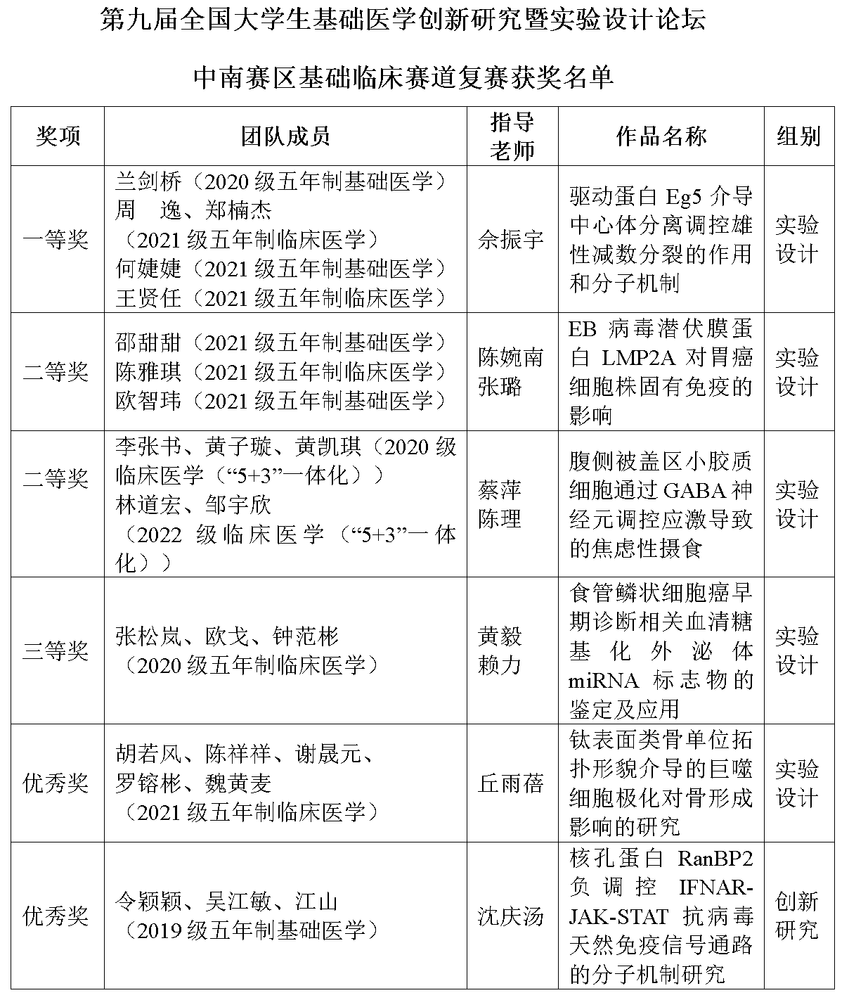 基础医学创新研究暨实验设计论坛中南赛区复赛取得佳绩