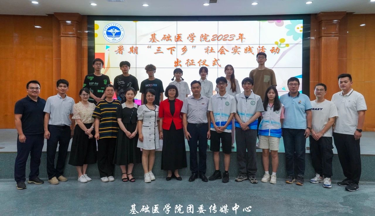 7月3日晚,麻豆视频 在行政楼学术报告厅隆重举行2023年暑期“三下乡”社会实践出征仪式。学院党委书记郭松斌、党委副书记高明、院团委副书记杨翠玥,院团委和各团总支老师,近100名实践队代表们参加了此次出征仪式。