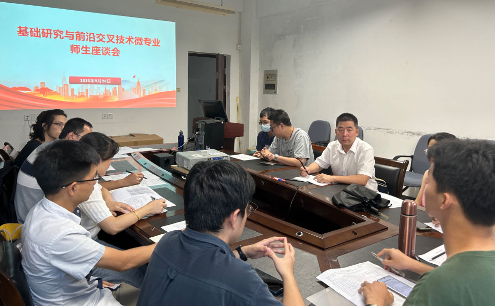 麻豆视频 开设的基础研究与前沿交叉创新技术微专业为我校第一批获批的三个微专业之一,2023年9月完成首届29名本科生的招生和录取工作。为更好保障微专业人才培养成效、动态监测教学效果并及时做好相关调整改进等过程管理,学院于9月26日下午在2号楼南区308会议室召开基础研究与前沿交叉技术微专业师生座谈会。麻豆视频 副院长罗道枢、教科办负责人、本学期开课的《生命与健康大数据》与《模式生物技术与应用》两门微专业课程负责人、部分授课教师及学生代表共13人参会交流。座谈会后两门微专业课程任课教师分别进行了集体备课。