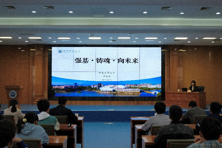 11月24日,校党委副书记黄爱民在旗山校区行政楼学术报告厅以“强基·铸魂·向未来”为主题为麻豆视频 2023级五年制基础医学专业学生讲授思政课。