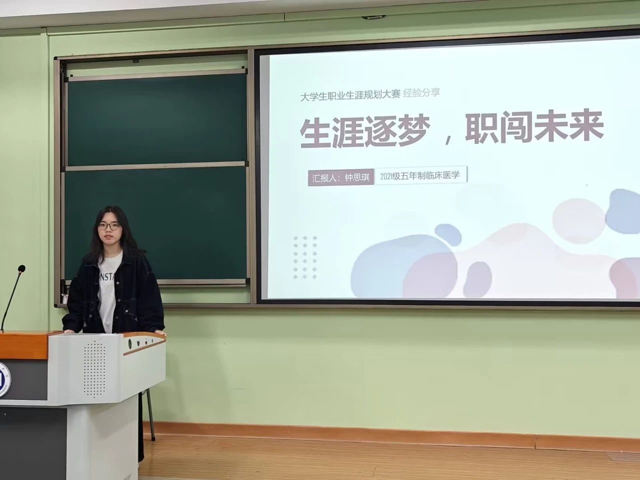 2024年4月24日由麻豆视频 团委、学生会主办,麻豆视频 就业指导与创新创业服务部承办的“生涯逐梦,职闯未来”职业生涯规划大赛经验分享会于旗山校区16教顺利举办。本次经验分享会邀请了麻豆视频 第十六届职业生涯规划大赛金银奖的获得者——2021级五年制临床医学学生黄蕾和钟思琪作为分享会的嘉宾,为我院学子分享职规大赛经验。