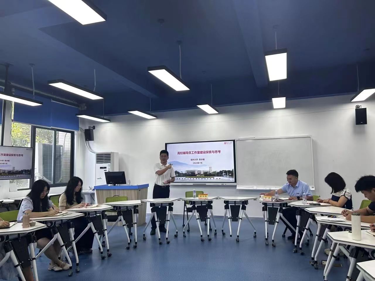 为进一步加强学院辅导员工作室建设,推动辅导员队伍专业化、职业化,学院于7月5日成功举办2024年第9期辅导员思政沙龙《高校辅导员工作室建设探索与思考》。本次活动邀请到福州大学人文社会科学学院党委副书记、纪委书记陈永福教授主讲,我院党委副书记秦雷主持,全体辅导员参加。