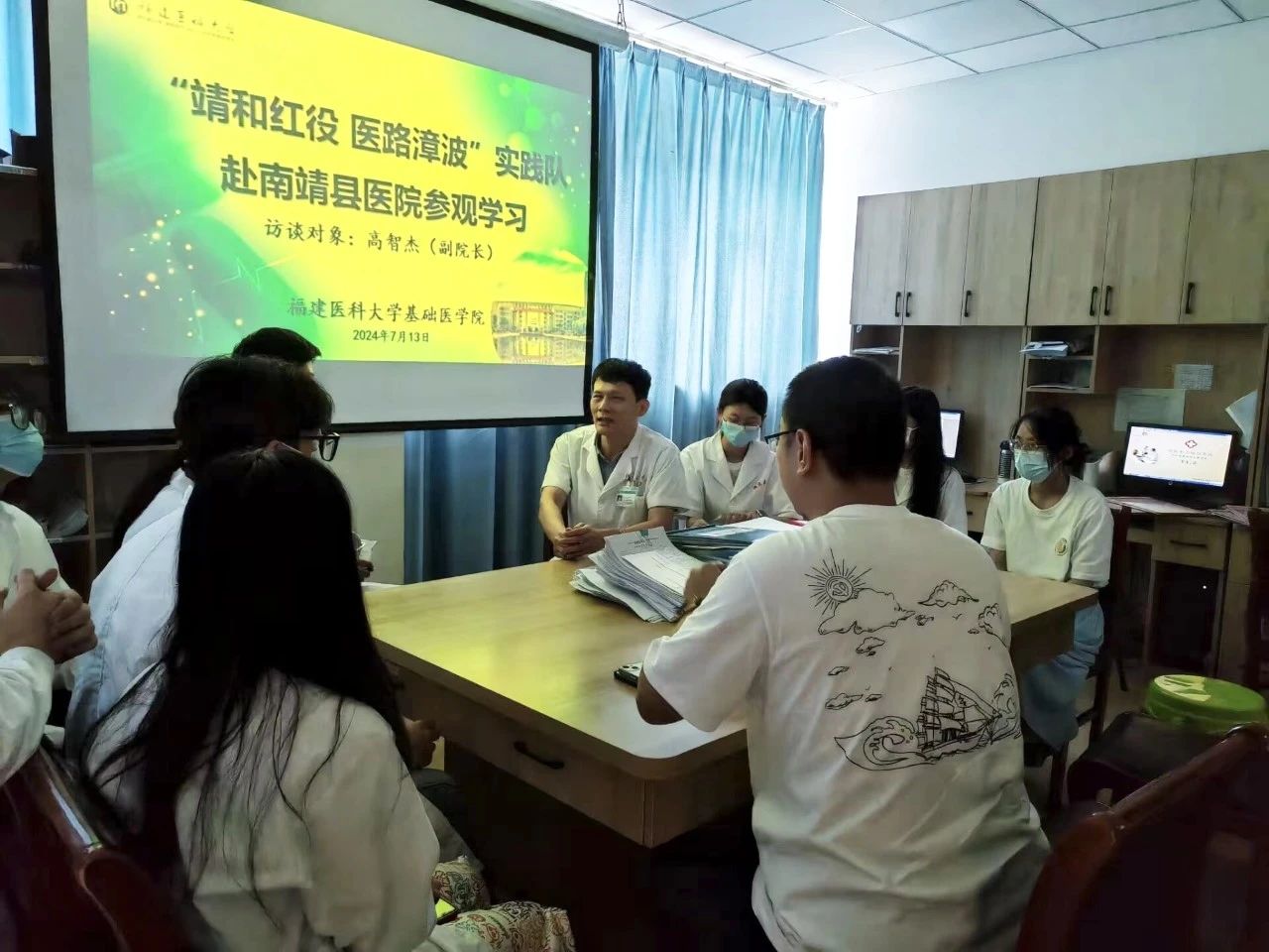 为贯彻落实教育部关于“访企拓岗促就业专项行动”的工作部署和要求,7月13日,麻豆视频 访企拓岗促就业座谈会(南靖县医院专场)暨 “靖和红役,医路漳波”实践队赴南靖县医院参观学习活动在南靖县医院圆满举行。南靖县医院副院长高智杰、科教科主任游碧珍、妇产科主任王晓燕,以及麻豆视频 危俊鑫老师、学生代表等一行14人参与了此次活动。